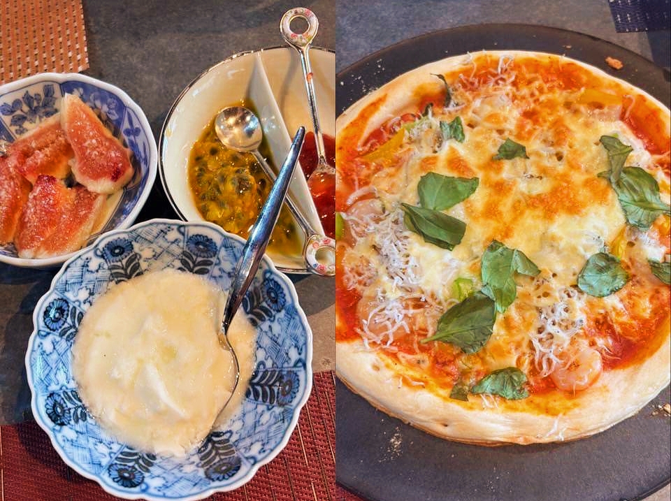 翌日の朝は、淡路島らしいフレッシュな食材で朝食を作りませんか?洋食(パン or ピザ)と和食(しらす丼)から選ぶことができます。食材費として500円(小学生までのお子様は300円)/人をいただいております。